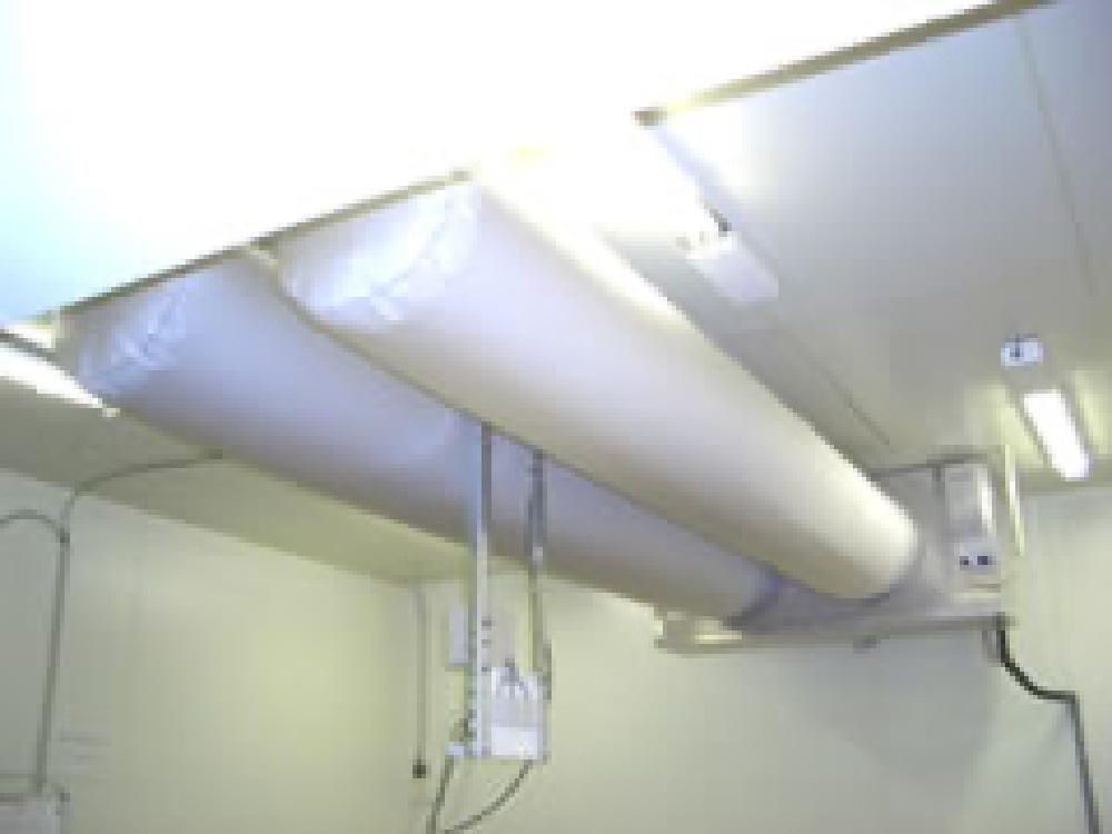 プレフィルターとヘパフィルターを内蔵し、天井部に設置して室内空気をクラス10,000〜100,000のクリーン度にします。